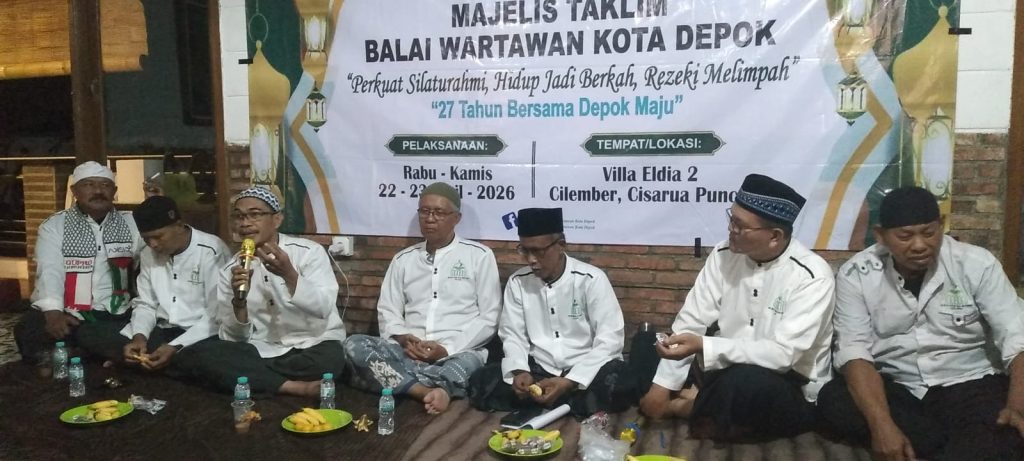 BOGOR, JABAR- Dengan mengangkat tema ‘Perkuat Silaturahmi, Hidup Jadi Berkah, Rezeki Melimpah’ serta semangat ’27 Tahun Bersama Depok Maju’, Majelis Taklim Balai Wartawan Kota Depok menggelar kegiatan Halalbihalal yang diikuti oleh pengurus dan jamaah di Villa Eldia 2 kawasan Cilember, Cisarua, Puncak, Bogor pada Rabu – Kamis (22-23/04/2026).