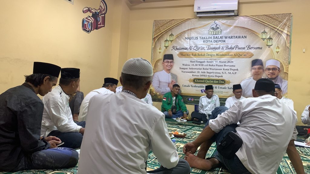-BALAIKOTA, DEPOK- Senin 16 Maret 2026 Majelis Taklim Balai Wartawan Kota Depok sukses menggelar kegiatan Khataman Al-Qur’an yang dirangkai dengan Tausyiah dan Buka Puasa bersama. Ini merupakan program yang kedua kalinya dilaksanakan dalam rangka turut menyemarakan Bulan Suci Ramadan 1447 Hijriah dengan mengangkat tema ‘Mari Kita Raih Berkah Dengan Membumikan Al-Qur’an’ dan disiarkan Live Streaming di Akun MARGONDA TV dan Info Depok